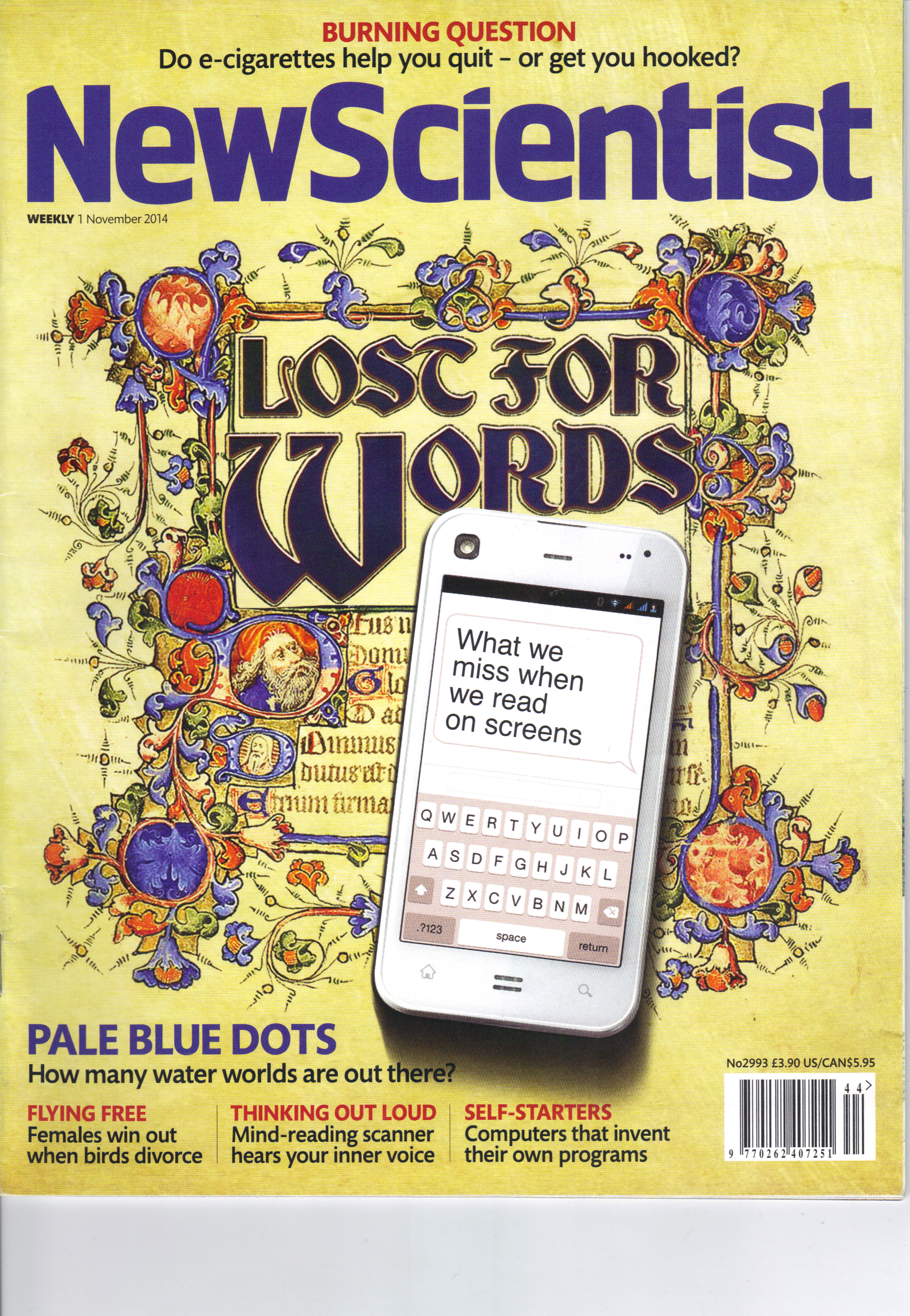 Hearing thoughts is front page in this issue of New Scientist magazine published on 01 November 2014